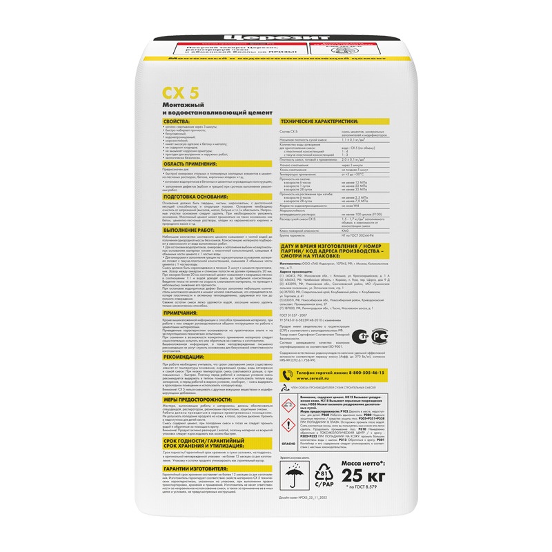 Цемент монтажный Церезит СХ 5 ВД, 25 кг