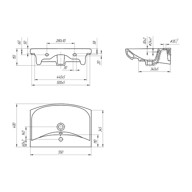 Раковина Cersanit Carina 55 универсальная, 550х400х155 мм