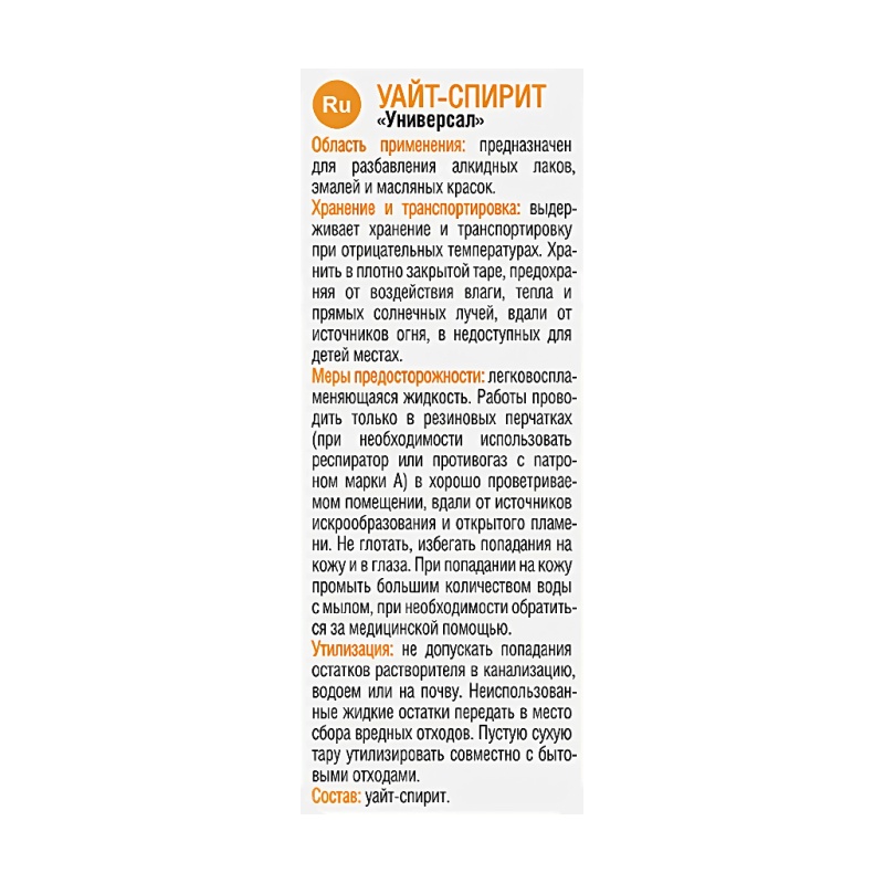 Предназначена для разбавления масляных красок, лаков, алкидных эмалей и грунтовок.