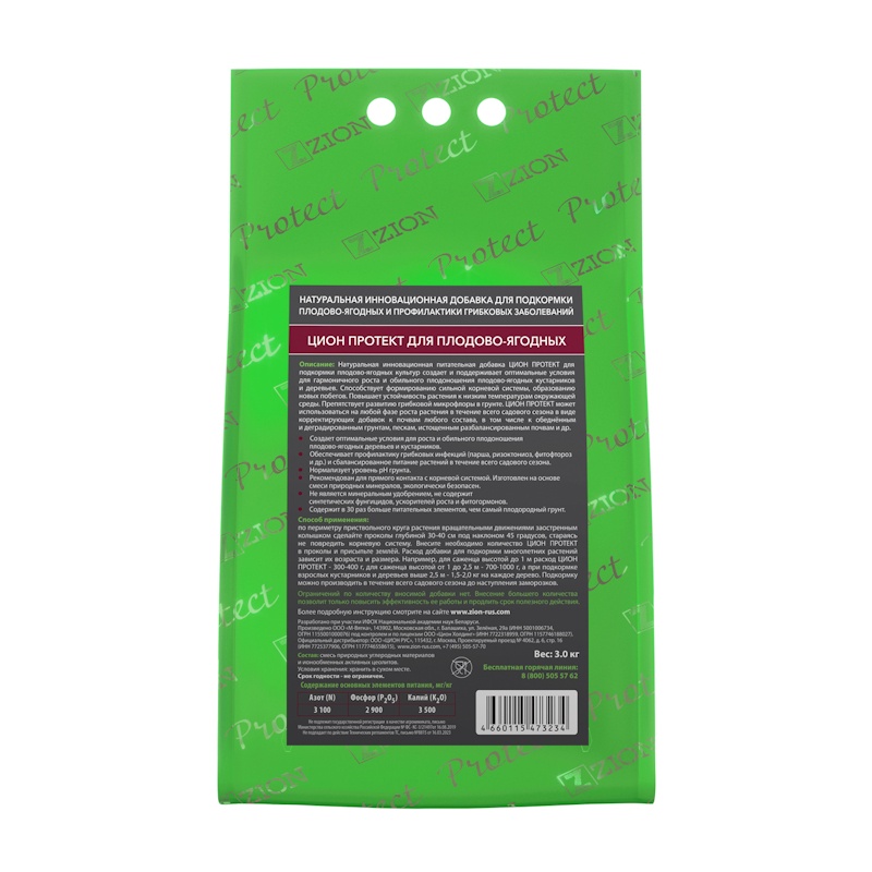Удобрение Zion Protect для выращивания плодово-ягодных культур (3 кг)