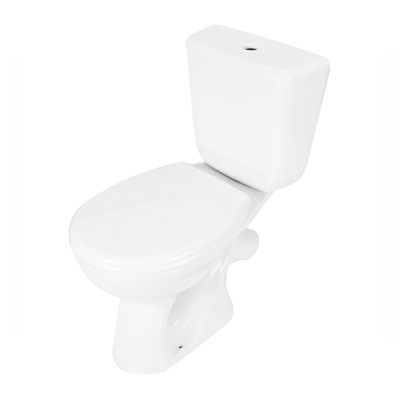 Предназначен для бытового использования. Унитаз ободковый, керамический с косым выпуском. Смывной бачок керамический с нижним подводом воды. Однорежимный спускной механизм. Сиденье для унитаза из полипропилена.