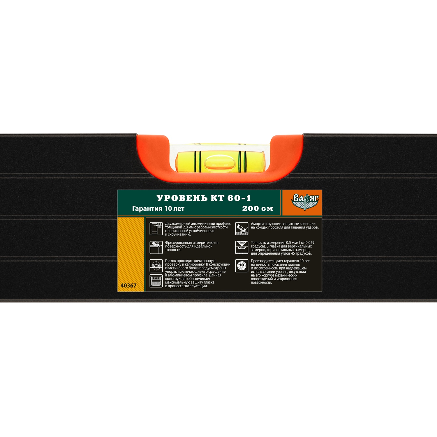 Уровень Варяг 40367 КТ 60-1 усиленный, 3 глазка, 2000 мм