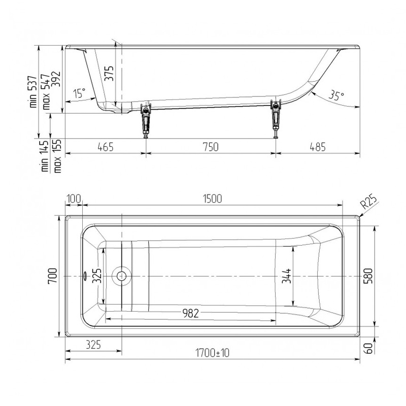 Ванна чугунная Универсал Оптима, без ножек, 1700х700 мм