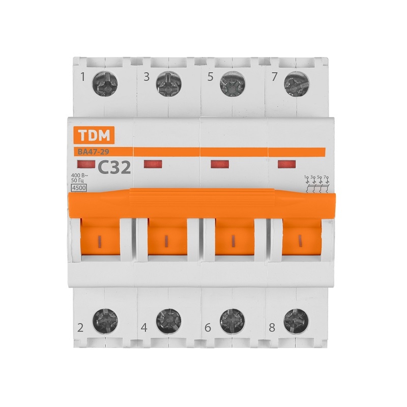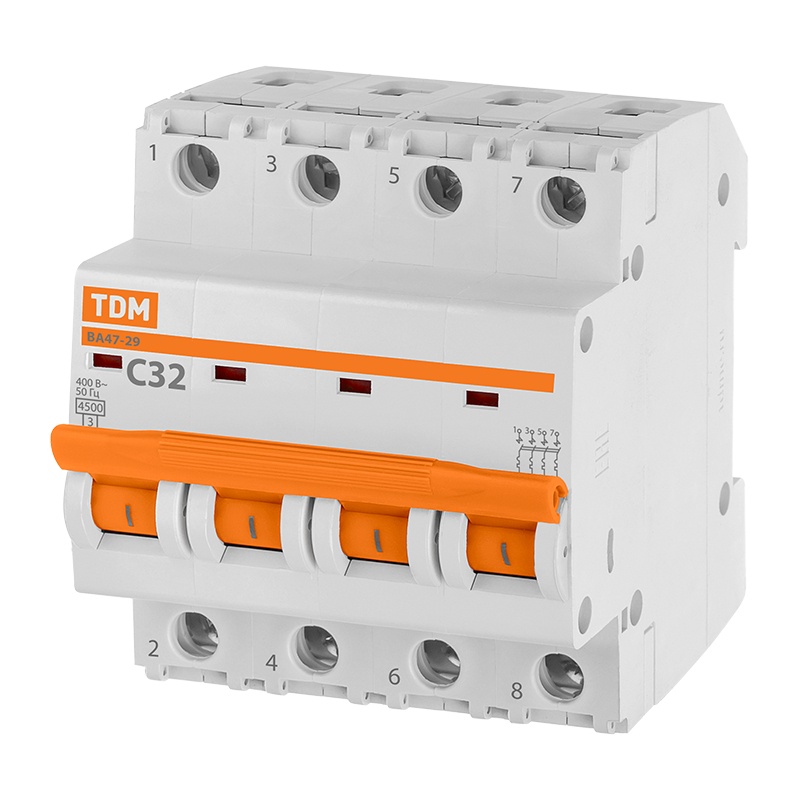 Выключатель автоматический TDM ВА 47-29, 4,5кА, С 32А, 4П
