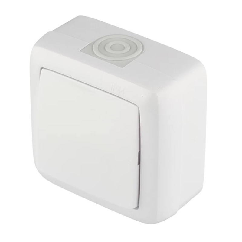 Выключатель о/у Alfa ВА10-211, 1 клавиша, б/инд, IP44, белый