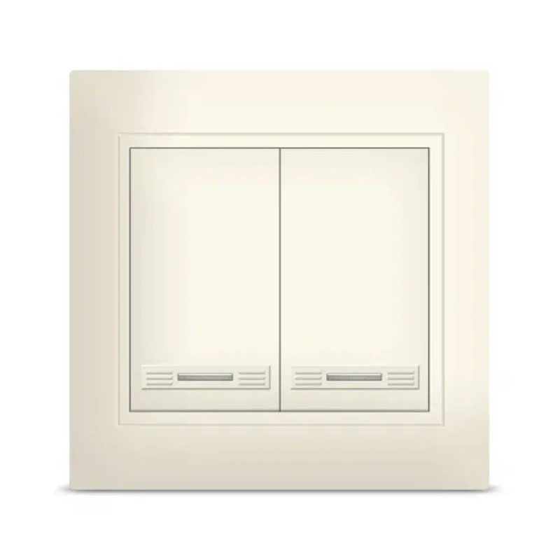 Выключатель в сборе с/у Севиль Б-С0123, 2 клавиши, с/инд, IP20, слоновая кость