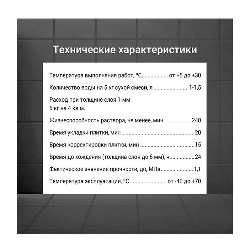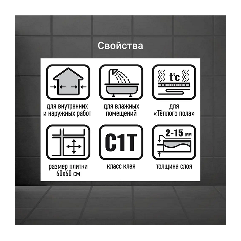 - Универсальность применения: Клей подходит для внутренних и наружных работ, обеспечивая надежную укладку в любых условиях, что позволяет вам использовать его в самых разнообразных проектах.