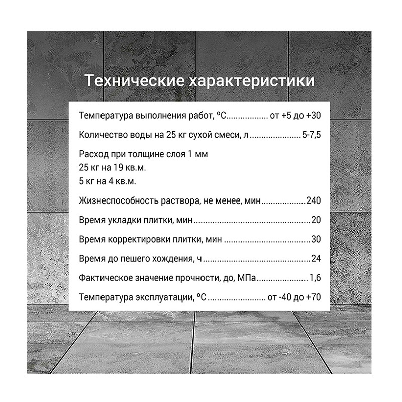 • Время укладки плитки: 20 минут