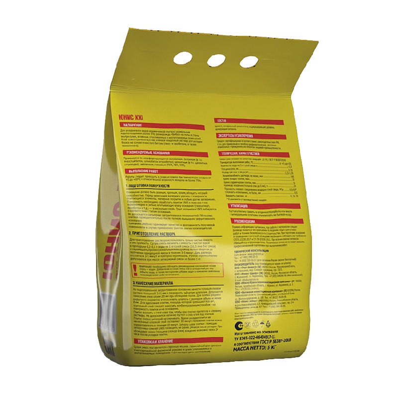 Экономичный клей ЮНИС XXI предназначен для укладки всех видов керамической плитки с нормальным водопоглощением (более 5%) размером до 45х45 см на полы и стены в помещениях различного назначения — как сухих, так и влажных, отапливаемых и неотапливаемых. Кроме того, он может использоваться в качестве клеевого кладочного раствора для укладки блоков на основе ячеистого бетона, таких как пенобетон, газобетон и газосиликатные блоки.