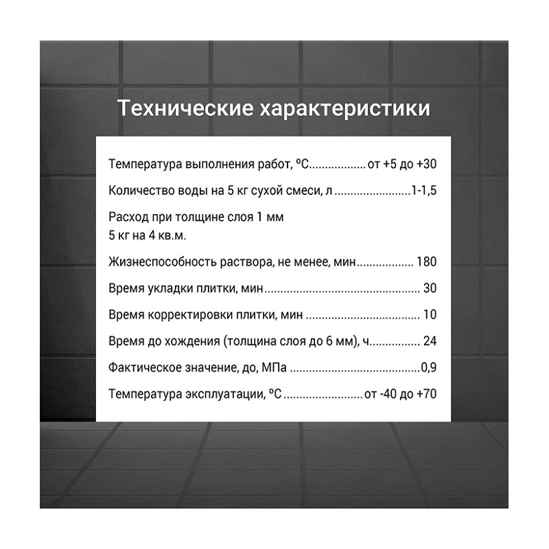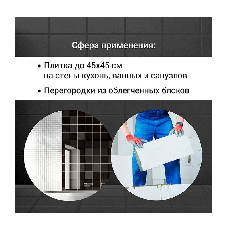 - Приклеивание плитки без сползания: Обеспечивает надежную фиксацию плитки, что исключает необходимость в повторных работах и повышает качество укладки.