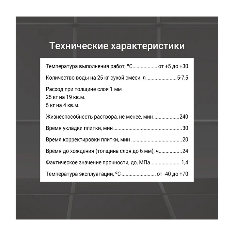 - Работа с подогревом: Идеален для укладки плитки на полы с подогревом, что повысит комфорт в вашем доме.