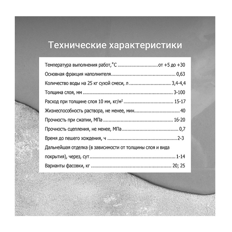 - Усилен армирующими волокнами для снижения риска трещин и усадки.